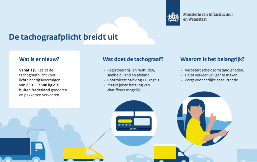 Vanaf 1 juli geldt de tachograafplicht voor lichte bedrijfsvoertuigen van 2501 – 3500 kg die buiten Nederland goederen en pakketten vervoeren.